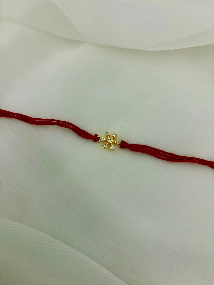 This minimal Bhai Rakhi features a sleek golden element accented with delicate stones, tied together with a classic red thread. It’s perfect for brothers who prefer an elegant and understated look, adding a touch of tradition and charm without being too flashy.
