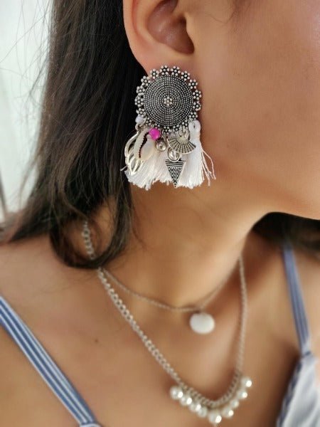 and matching charms white tassel studs.